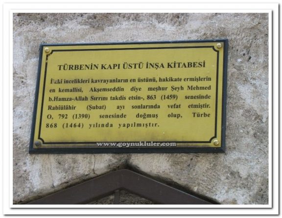 AKşemseddin Hz. türbesi kapı üstü kitabesi