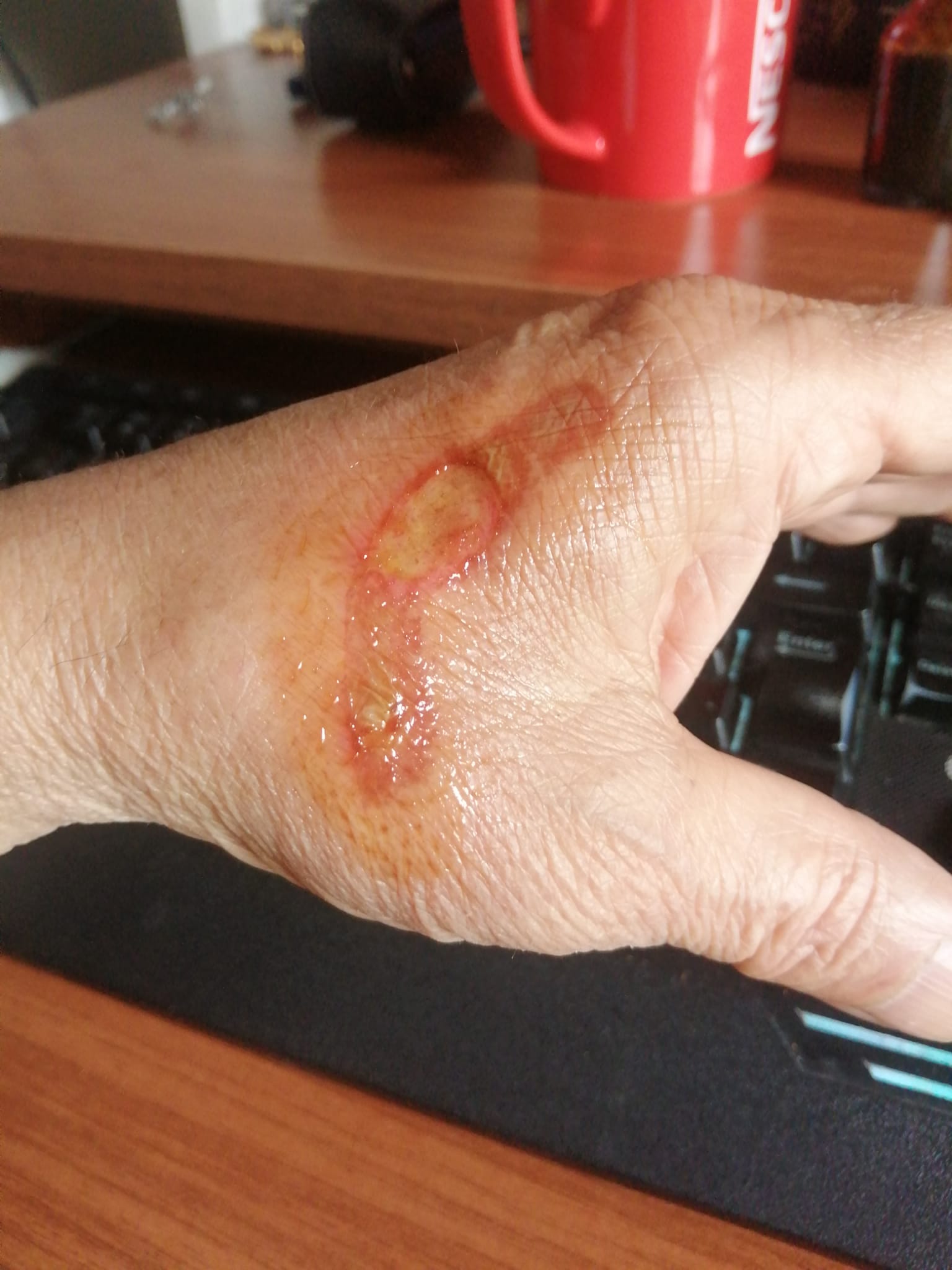 Initially, we underestimated the burn, thinking the stove wasn’t hot enough to do serious damage. But the next day, blisters began to form, and we realized the situation was more serious than we thought.