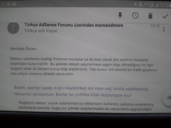 Sliderde Adsense sabit reklam için googlenin verdiği cevap